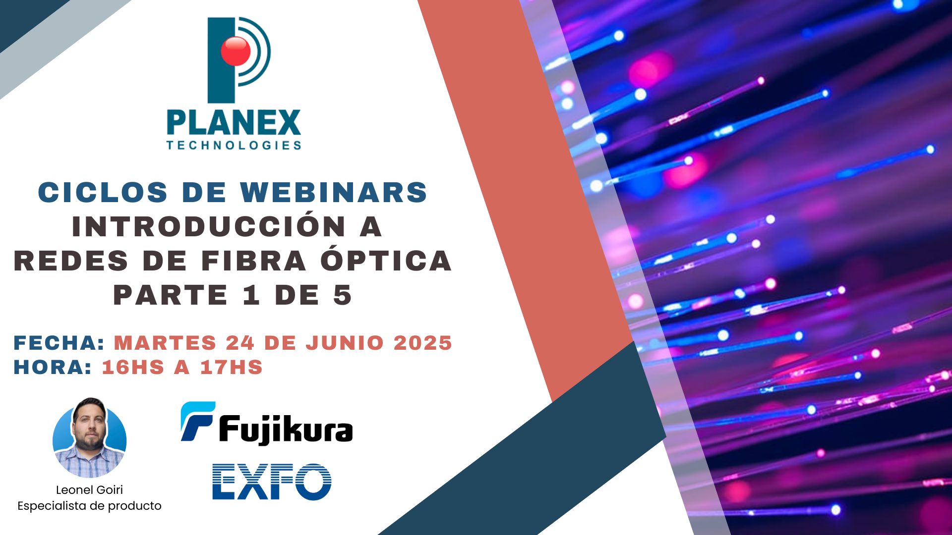 📍 Organizado por Planex Technologies, con el apoyo de Fujikura y EXFO, este ciclo contará con la disertación de Leonel Goiri, especialista en producto con amplia experiencia en el rubro de las telecomunicaciones.